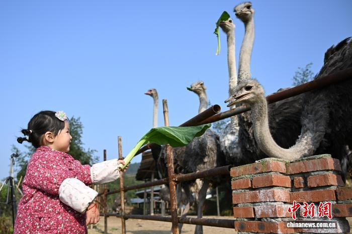 1月9日,一名小朋友在重庆仕亨鸵鸟养殖基地体验喂鸵鸟。 中新社记者 何蓬磊 摄据关坝镇政府统计,范志亨返乡创业的第一年,该镇仅有他一名从事农业的大学生。如今,这一数字上升至七人。范志亨说,未来他将进一步扩大养殖、销售规模,并探索鸵鸟观光、研学等新项目。(完)