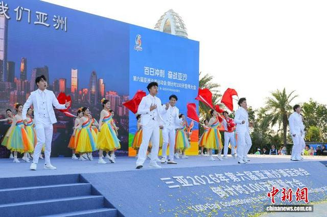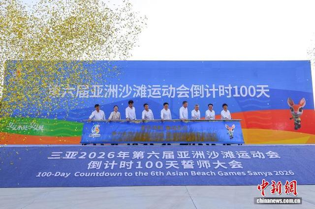 1月12日,第六届亚洲沙滩运动会倒计时100天誓师大会在海南省三亚市举行。图为倒计时100天启动仪式现场。中新社记者 骆云飞 摄