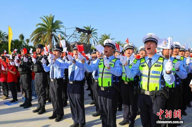 1月12日,第六届亚洲沙滩运动会倒计时100天誓师大会在海南省三亚市举行。图为活动现场。中新社记者 骆云飞 摄