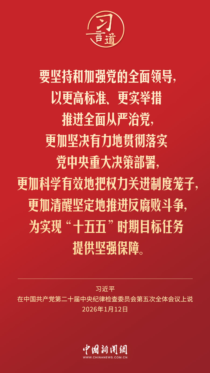 1月12日,中共中央总书记、国家主席、中央军委主席习近平在中国共产党第二十届中央纪律检查委员会第五次全体会议上发表重要讲话。他指出——
