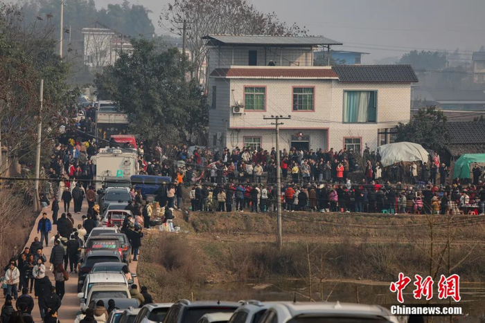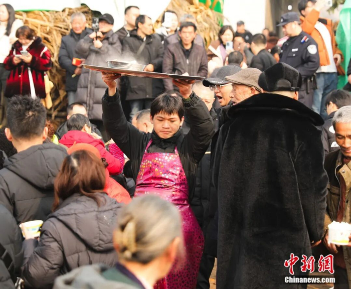 网友“呆呆”家门前,刨猪宴吸引众人。谌永恒 摄