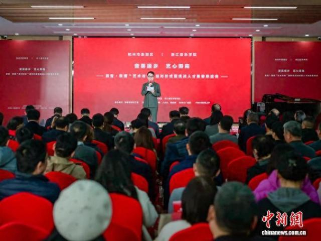 活动现场。主办方 供图活动现场,第三批“艺术村长”聘任仪式举行。6位来自浙江音乐学院的“艺术村长”及1位“艺术村长”首席运营官受聘,分别与西湖区转塘街道的5个村社、1个艺术街区结对,为乡村文化振兴注入专业力量。