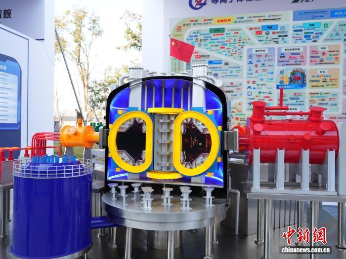 1月16日,2026核聚变能科技与产业大会在安徽省合肥市开幕。大会现场展示了核聚变能技术与产业创新成果。图为全超导托卡马克核聚变实验装置(EAST)模型。付敏 摄