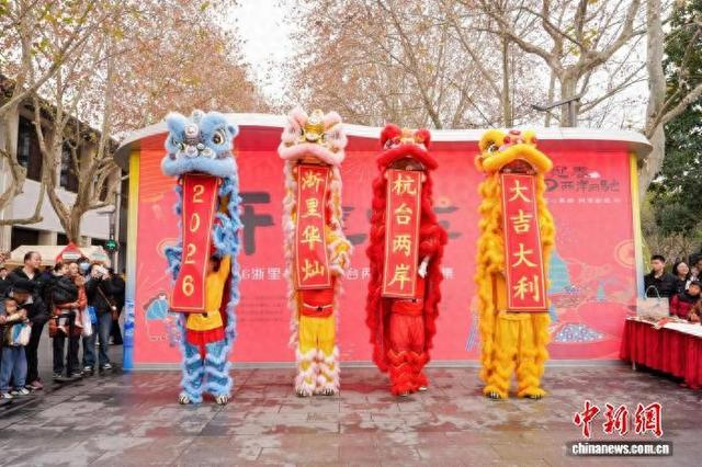 1月17日,民俗表演亮相年货市集。当日,杭台两岸年货市集在浙江杭州西湖畔开集,两岸优质年货资源、非遗技艺、民俗展演等汇聚现场。中新社记者 郭其钰 摄