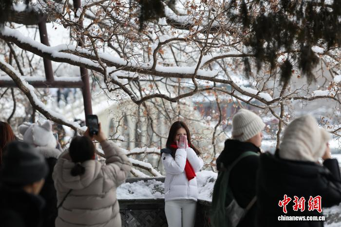 1月18日,北京,市民在颐和园赏雪景。 中新社记者 盛佳鹏 摄白雪皑皑中,故宫游人如织,他们用镜头记录红墙金瓦覆雪之美。八达岭长城景区,蜿蜒的城墙与烽火台银装素裹,游客用镜头定格“冰封雪飘”画卷……人们踏雪而行解锁京城里的诸多“限定雪景”。
