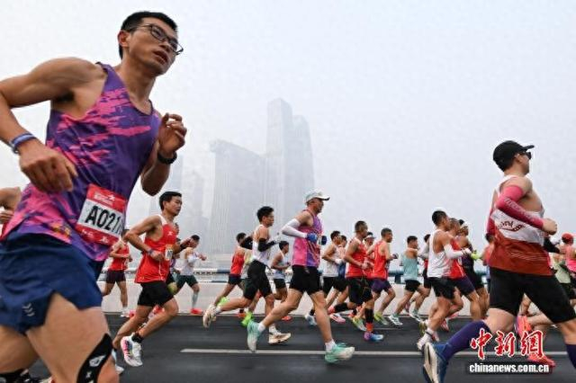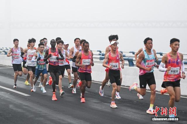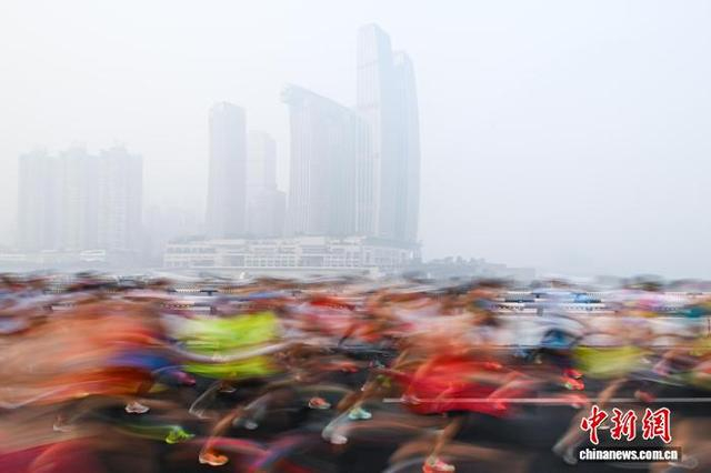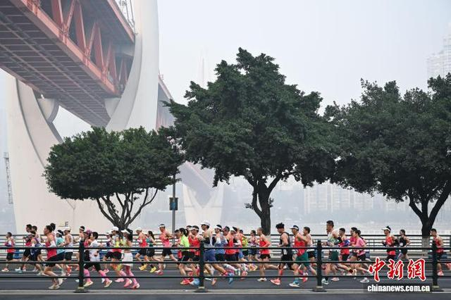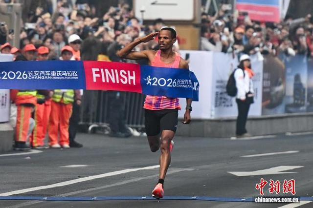 1月18日,2026重庆马拉松在重庆市南岸区南滨路海棠烟雨公园鸣枪起跑,吸引来自26个国家和地区的2.5万名选手参赛,在长江之滨演绎速度与激情。最终,来自埃塞俄比亚的选手阿迪苏·特斯法洪·塔费雷(ADISU TESFAHUN TAFERE)以2小时08分28秒的成绩夺得男子组冠军。中新社记者 何蓬磊 摄