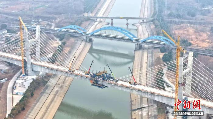 1月18日,沪宁合高铁南京六合特大桥跨马汊河斜拉桥合龙。叶天佑 摄沪宁合高铁南京六合特大桥跨马汊河斜拉桥位于南京江北新区境内,全长520米,其中主跨长达220米。中铁上海工程局沪宁合高铁南京枢纽2标一分部总工程师黄玉澍介绍,团队推动智能化建造,应用线性智能化监测技术,实时采集、传输与分析施工过程中的应力、变形、温度等数据,实现基于精准信息的动态施工调整,为最终实现毫米级高精度合龙提供了技术支撑。