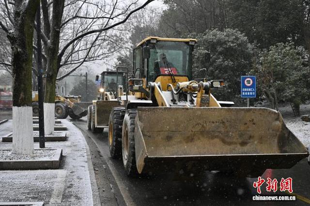 1月19日,安徽省颍上县迎来降雪天气。该县城市管理局组织铲雪车队在道路上开展清雪作业,保障民众出行安全。中新社记者 韩苏原 摄