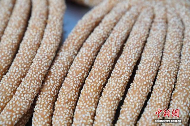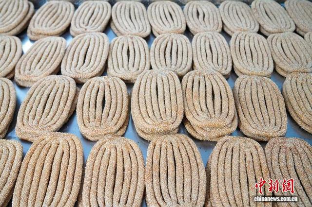 图为外层裹满芝麻的“草鞋”粿条。王以照 摄