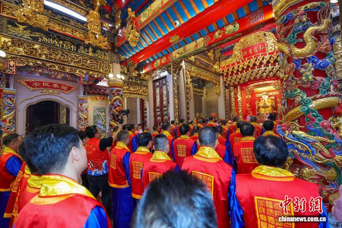 当天,在庄严的乐声中,妈祖信众谨循礼制,向妈祖行庄重的三献礼,进香祈福。庄严的古礼,也吸引众多游客驻足拍照留念。