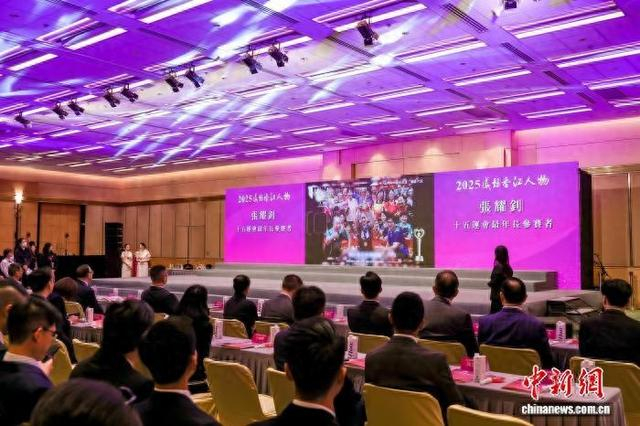 图为颁奖典礼现场播放获奖者的影片。 (主办方 供图)6组“2025感动香江人物”分别是艺坛“常青树”胡枫、战胜身体限制的香港青年陆永杰、重走长征路的七旬港人郑镇炎、从普通家庭到国家舞台的音乐少年李靖甫、爱国港人阿兵与朱先生、十五运会最年长参赛者张耀钊。