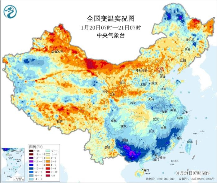 中新网1月21日电 据中央气象台网站消息,昨日,山东半岛及苏皖沪、浙江北部和中西部、江西中北部、湖北、湖南、贵州东部等地出现降雪或雨夹雪天气,湖南常德和益阳、湖北黄石和武汉等地部分地区降水量达5~7.6毫米。湖南中部和南部、贵州中部等地出现冻雨。今晨,福建西部、江西南部、广东北部、广西、贵州西南部等地部分地区出现6~10℃降温,广西局地达12~14℃。气温0℃线位于贵州南部、湖南南部至江西中部、浙江北部一带。