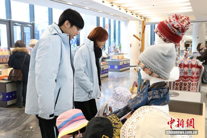 图为台湾青年在新疆博物馆文创区域参观。张家伟 摄