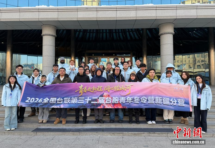 1月20日,全国台联第三十二届台胞青年冬令营新疆分营在乌鲁木齐市开营,来自台湾的23位青年学子将在新疆感受人文历史、体验冰雪风情,开启一段以“青春赴新程同心绘山河”为主题的文化交流之旅。图为台湾青年在新疆师范大学参观交流。张家伟 摄