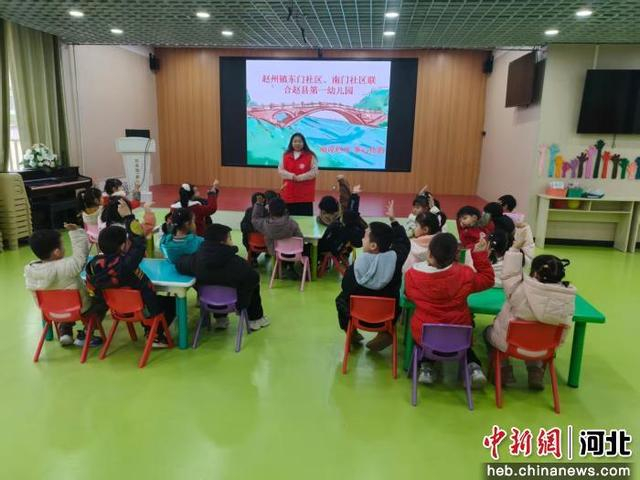 “画说赵州 童心传韵”活动现场。 王红 摄活动现场,社区工作人员通过讲述赵县的历史故事、播放宣传动画短片的方式向孩子们展示了赵州桥,通过生动有趣的情节和互动问答,孩子们听得津津有味。随后,社区工作人员和小朋友们一起将自己心目中的赵州桥画在纸上。