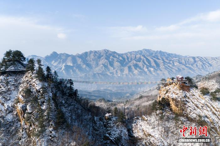 1月21日,河南南阳西峡县老界岭雪后景色壮丽。老界岭是中国南北气候的分界线,长江和黄河流域的分水岭,平均海拔1500米。(无人机照片) 薛凯 摄