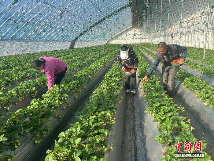 寒冬时节,山西长子县石哲镇西村的草莓大棚内呈现出一派繁忙景象。翠绿植株间,草莓挂满枝头,工人们穿梭其中,进行采摘、分拣、包装工作。随后,一筐筐草莓将通过线上线下渠道发往全国各地。