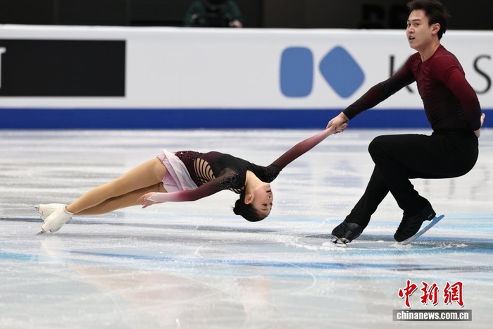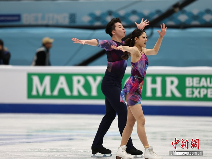 1月22日,2026年国际滑联四大洲花样滑冰锦标赛在北京开赛。中国组合肖紫兮(右)、何凌昊在冰上舞蹈韵律舞比赛中获得61.26分,名列第十一。中新社记者 蒋启明 摄