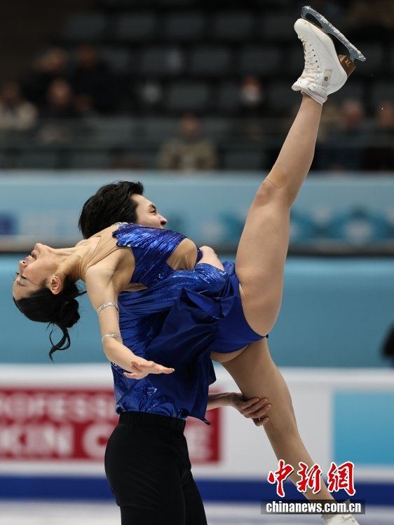 1月22日,2026年国际滑联四大洲花样滑冰锦标赛在北京开赛。中国组合隋文静、韩聪(左)在双人滑短节目比赛中获得76.02分。中新社记者 蒋启明 摄
