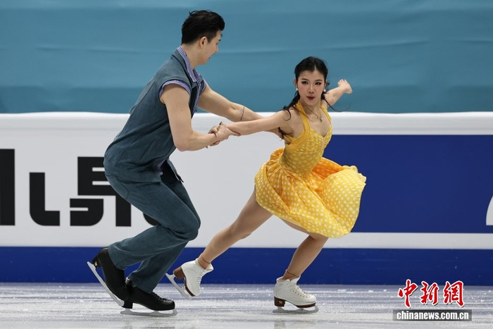 1月22日,2026年国际滑联四大洲花样滑冰锦标赛在北京开赛。中国组合柳鑫宇、王诗玥(右)在冰上舞蹈韵律舞比赛中获得64.41分,名列第八。中新社记者 蒋启明 摄