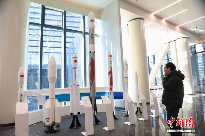 1月23日,第三届北京商业航天产业高质量发展推进会在北京经开区通明湖会展中心举行。本次大会以“聚力赋新 质向空天”为主题,设置成果发布、主旨报告、专题座谈等多个环节。图为参会嘉宾参观中国商业卫星火箭模型。记者 易海菲 摄