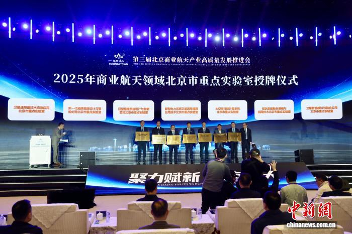 1月23日,第三届北京商业航天产业高质量发展推进会在北京经开区通明湖会展中心举行。本次大会以“聚力赋新 质向空天”为主题,设置成果发布、主旨报告、专题座谈等多个环节。图为2025年商业航天领域北京市重点实验室授牌仪式。记者 易海菲 摄