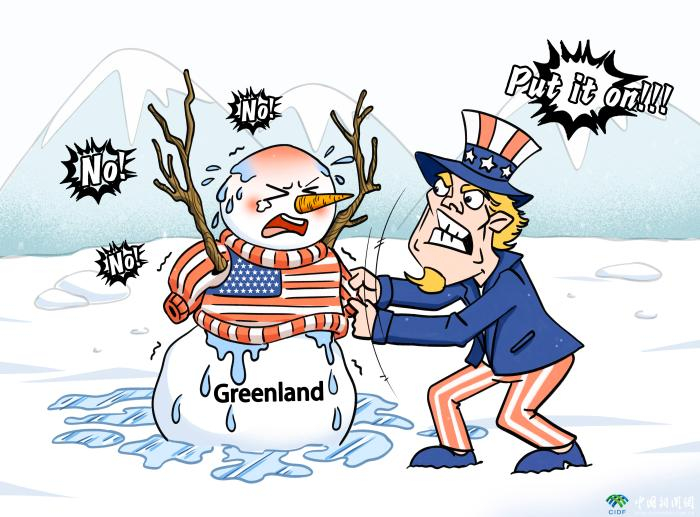 在霸权目光凝视下,格陵兰岛仿佛立于北极冰原的雪人。美国无视国际法与别国主权,将别国领土视为“空白之地”,企图以“送温暖”名义将格陵兰岛纳入“麾下”,披上自己织就的外衣,却并不在意这种贪婪是否会加速冰雪消融。