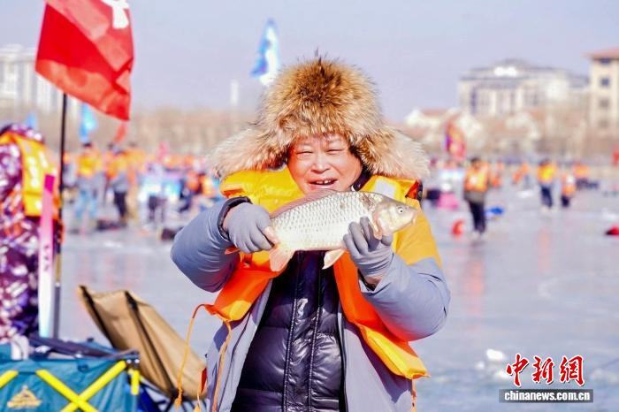 选手展示成果。 李少波 摄赛事以混合鱼团体重量赛为核心,通过精准投放1.5万斤适钓鱼类,既保障了竞技水准,也让赛事更具观赏性。比赛期间,选手们身着统一救生衣默契配合,冰孔旁钓竿起落间尽显专业素养,称重区的团队协作则见证着实力比拼。