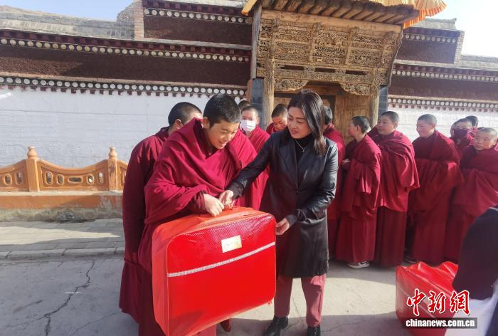 中新网兰州1月24日电 (王牧雨 九美旦增)“我们希望让她们也不要忘记自己是个女性。”甘肃省甘南藏族自治州合作市妇联主席马晓虹说道。每年“三八”国际妇女节,合作市曲宗红教尼姑寺的70多位僧尼,都会收到一份特别的礼物——系着丝带的礼品盒里,装着护手霜、润肤露等化妆品。这份来自合作市妇联的关怀,细腻而温暖,触动着这群长期远离世俗生活的特殊女性群体。