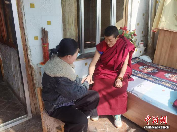 合作市妇联干部陈妍(左)同曲宗红教尼姑寺僧尼(右)拉家常谈心。(资料图)受访者供图“娘家人”的关怀无微不至