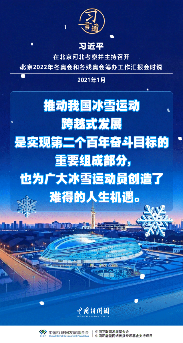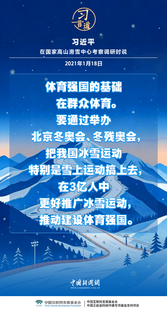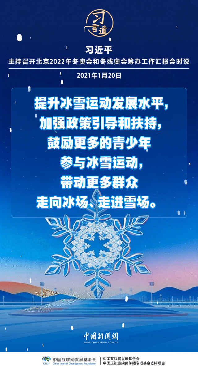 习近平总书记高度重视冰雪运动发展,多次寄语冰雪运动,强调“冰雪运动一定要全面开展”。在他的关心和推动下,冰雪运动跨过山海关,走进全国各地,开启了中国乃至全球冰雪运动新时代。