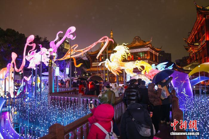1月26日,2026上海豫园灯会启幕。中新网记者 康玉湛 摄“来大豫园过上海年”的温暖邀约,随着灯会亮灯而发出。灯会以“回家过年”为情感主线,通过非遗灯彩、数字科技、潮流艺术与市井烟火的创新融合,打造集观灯、游览、互动、消费于一体的海派春节超级体验平台。