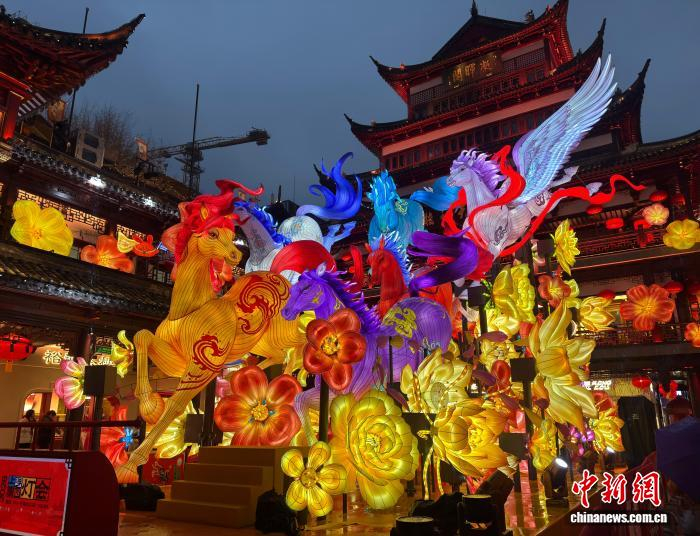 1月26日,2026上海豫园灯会启幕。(上海豫园商城 供图)“豫园民俗艺术灯区”作为豫园灯会的核心区域,今年推出备受期待的《山海奇豫记》第四季《旷野篇》。这一季以“以梦为马,旷野生花”为主题,通过非遗灯彩技艺与数智光影艺术融合,呈现一场传统文化与现代科技交相辉映的视觉盛宴。该主题寓意人生是广阔的“旷野”而非固定的“轨道”,鼓励人们在变化的世界中如骏马般勇往直前,勇敢追逐梦想。