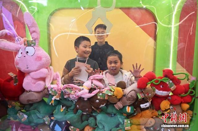 图为甘肃省博物馆内的各种文创毛绒玩具吸引小朋友。中新社记者 九美旦增 摄