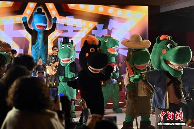 图为嘉宾展示当晚首发的“红运当头马”“本命年马”“西部马仔”三款毛绒玩具。中新社记者 九美旦增 摄