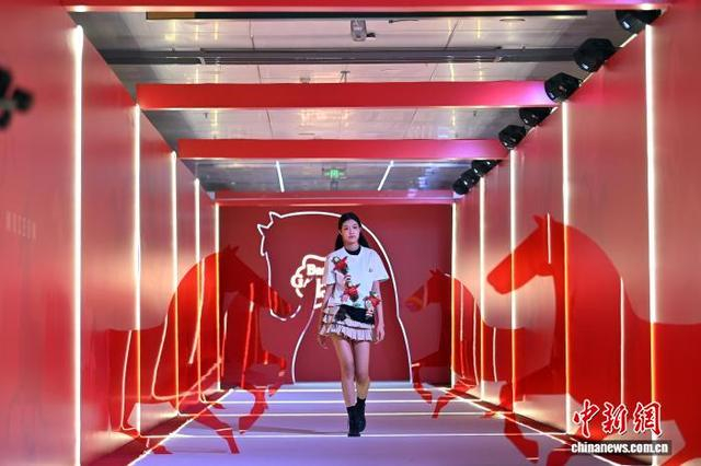图为以“铜奔马”为主题的绿马人偶T台走秀吸引现场嘉宾。中新社记者 九美旦增 摄