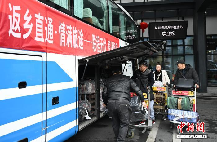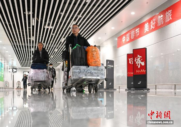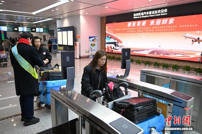 1月27日,欧洲侨胞到达杭州机场。当日,浙江杭州机场举办“浙里有爱 欢迎回家”暨“返乡直通·情满旅途——联程无忧·直通枢纽”主题活动。百余名欧洲侨胞从马德里抵达杭州,享受“空地联运”便捷服务,乘坐丽水青田专线巴士返乡。中新社记者 王刚 摄
