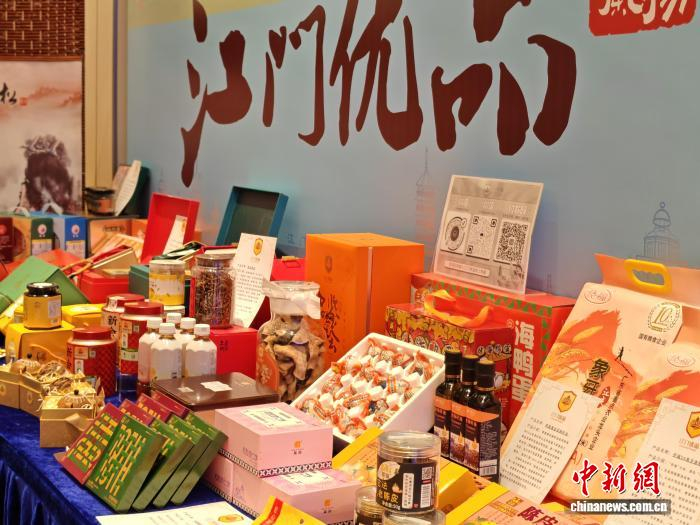 1月23日,江门五邑海外联谊会第六届理事大会上展示众多江门优品。 中新社记者 郭军 摄1月29日至2月1日,开平精品美食文化周将登陆开平人民公园,120多个全国品牌将齐聚打造特色美食消费盛宴,五邑特色美味集体亮相,以沉浸式美食消费体验吸引八方食客。