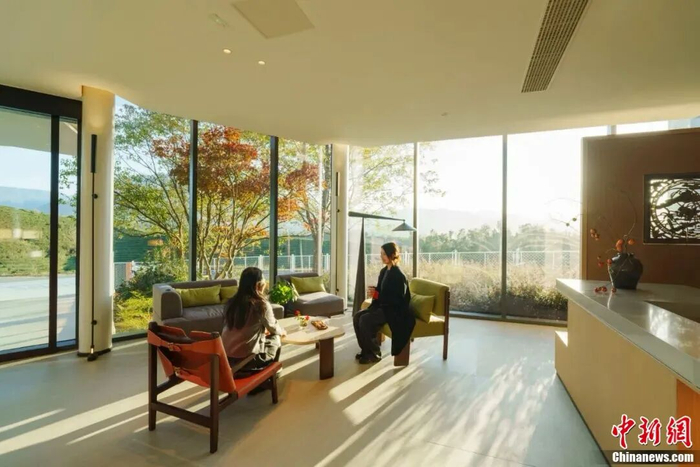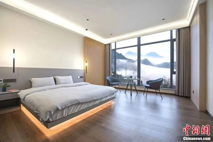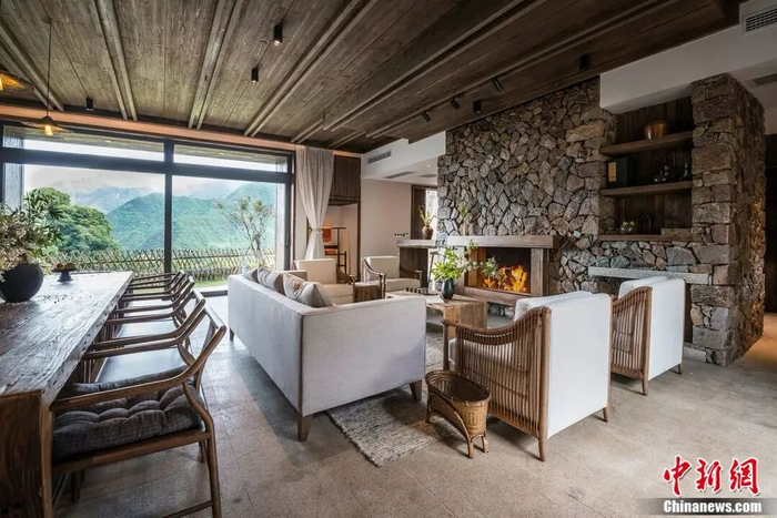 由老屋改造的民宿。遂昌融媒体中心 供图遂昌素有“茶文化之乡”的美名,于此品茗赏景也是乐事。在大柘镇万亩茶海的静谧深处,民宿错落有致,与茶园美景相得益彰。落地窗外便是连绵的万亩茶海,无论是漫步茶园小径,还是泡一壶遂昌龙谷丽人茶,在山水与茶香之间,都能感受到遂昌特有的宁静与悠然。