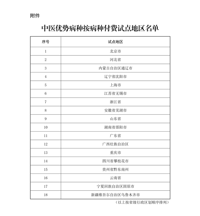 中新网1月29日电 据国家医保局微信公众号29日消息,国家医保局办公室 国家中医药局综合司发布关于确定中医优势病种按病种付费试点地区的通知。通知指出,根据《关于开展中医优势病种按病种付费试点工作的通知》要求,国家医保局、国家中医药局组织专家对申报中医优势病种按病种付费试点的地区开展遴选,经相应程序,确定北京、河北等9个省份以及内蒙古通辽、辽宁沈阳等9个城市纳入试点。