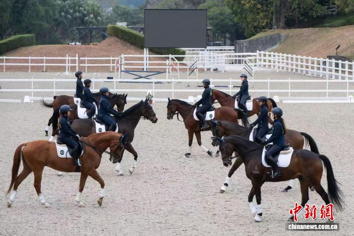 8匹参加香港赛马会“退役赛驹骏展新生计划”的马匹,将在第二届浪琴香港国际马术盛典上进行音乐骑术表演。(香港赛马会 供图)马会退役马匹福利经理龙颕思表示,上述表演分为中式和西式两个主题,分别配合以中西风格服饰和音乐进行。
