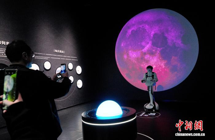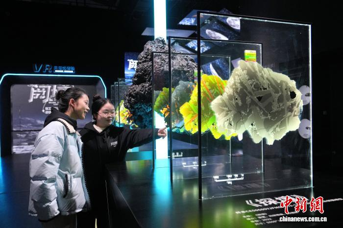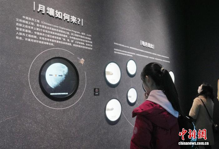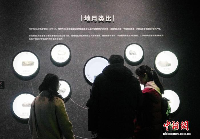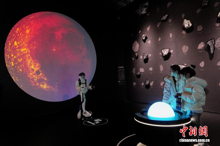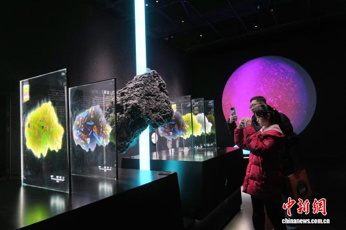 1月30日,全国首个以月壤科学为核心的沉浸式科普展览——“阅壤——月壤主题沉浸式科普展”,在成都自然博物馆(成都理工大学博物馆)正式对公众开放。展览依托嫦娥五号月壤样本(CE5C0600YJFM00402)科研数据,以“科学视野+艺术表达”为核心,通过前沿科技与艺术创作的深度融合,打造了一场兼具学术高度、体验感与人文温度的科普盛宴,为深空探索科普传播注入全新活力。图为观众参观展览。中新社记者 安源 摄