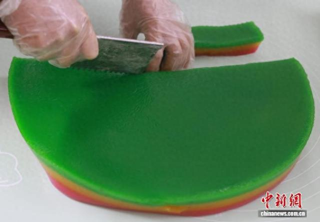 图为切块装盘的斑斓糕。汤晓逵 摄