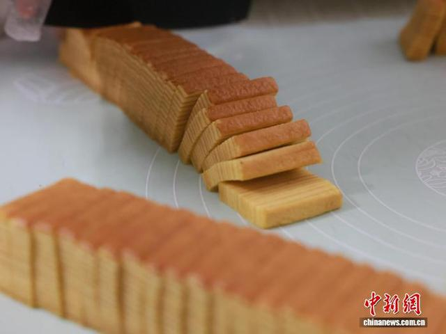 1月30日,广西柳城华侨农场里,一对姐妹花正忙碌着制作各类印度尼西亚、越南特色糕点。工作台上五台烤箱并排放置,飘出椰香与黄油交织的暖甜气息。几年前,姐姐罗社兰从越南归侨婆婆手中学到制作印尼小蛋糕、火筒板、糯米条等传统点心手艺,经营起一家东南亚风味糕点店。春节前夕,罗社兰与妹妹罗雪葵格外忙碌,两人制作的“侨”味糕点成为备受欢迎的年货,吸引全国各地食客及回国探亲的华侨提前预订。图为罗社兰将斑斓糕切块。汤晓逵 摄