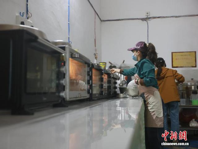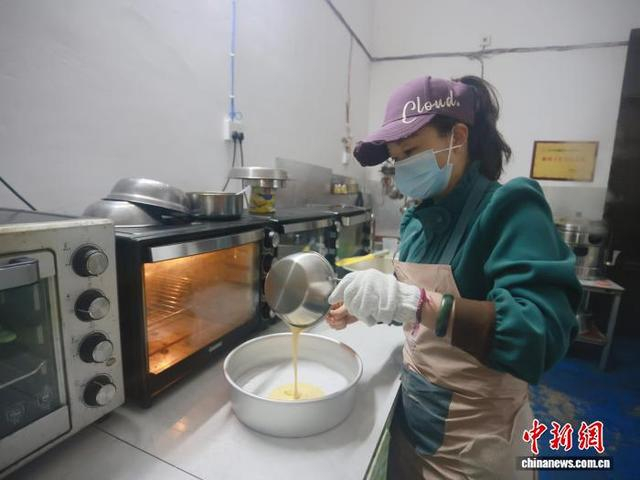 图为罗雪葵将斑斓糕原料倒入锅中蒸制。汤晓逵 摄