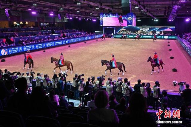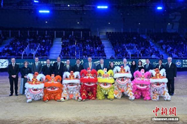 1月30日,“第二届浪琴香港国际马术盛典”在香港亚洲国际博览馆揭幕,活动结合世界顶尖马术竞技与休闲娱乐,为入场人士带来新的体验。当晚亮相的“香港赛马会亚洲青年挑战赛”展现新生代骑师的速度与技术,也有“狗狗障碍挑战赛”“香港赛马会音乐骑术表演”等,让现场气氛高潮迭起。图为香港特区政府政务司副司长卓永兴(右八)等嘉宾出席开幕典礼。中新网记者 李志华 摄