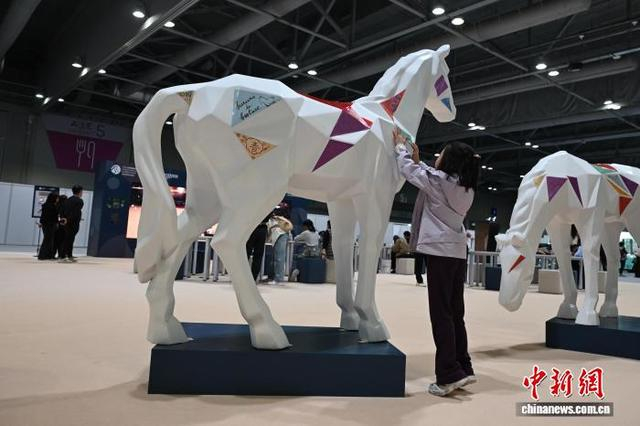 图为一名男士在展位内“打卡”留念。中新网记者 李志华 摄