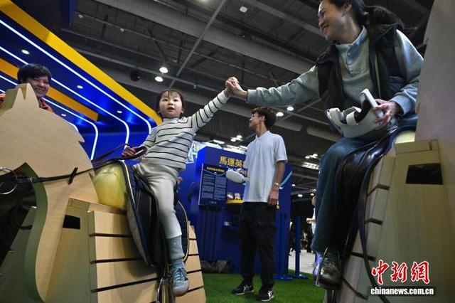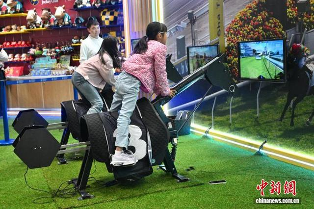 图为两名女孩玩赛马游戏。中新网记者 李志华 摄