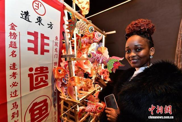 1月30日晚,在历史文化街区展示的鱼灯吸引留学生前来参观。中新社记者 张斌 摄