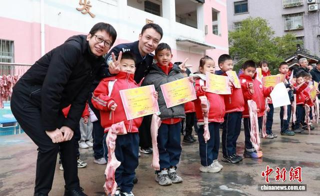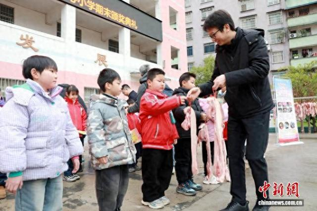 1月30日,广西三江侗族自治县古宜镇中心小学举行期末颁奖典礼,向300名获奖学生每人发放逾1公斤猪肉,以此激励学子勤学奋进。此次“猪肉奖”由有关单位及爱心基金共同资助,旨在传递社会关爱,激发学生学习热情,助推侗乡教育事业高质量发展。图为颁奖典礼现场。龚普康 摄